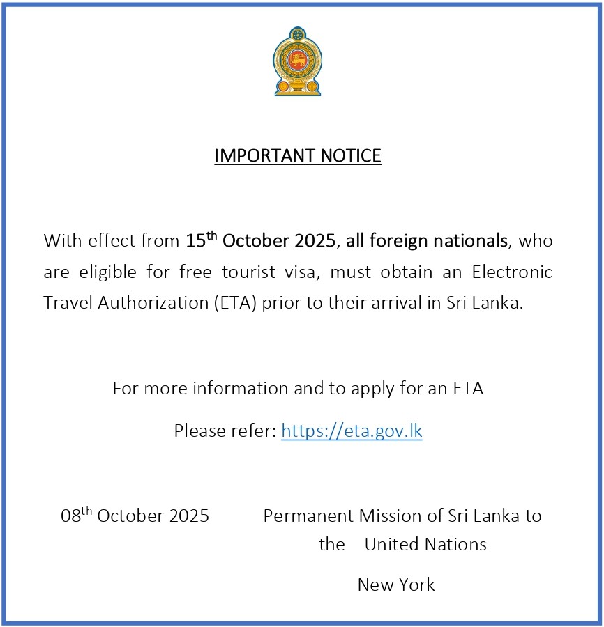IMPORTANT NOTICE FOR TRAVELLERS TO SRI LANKA