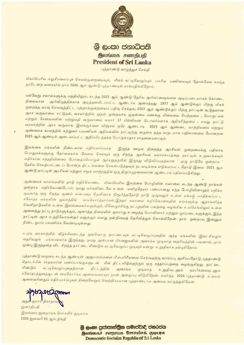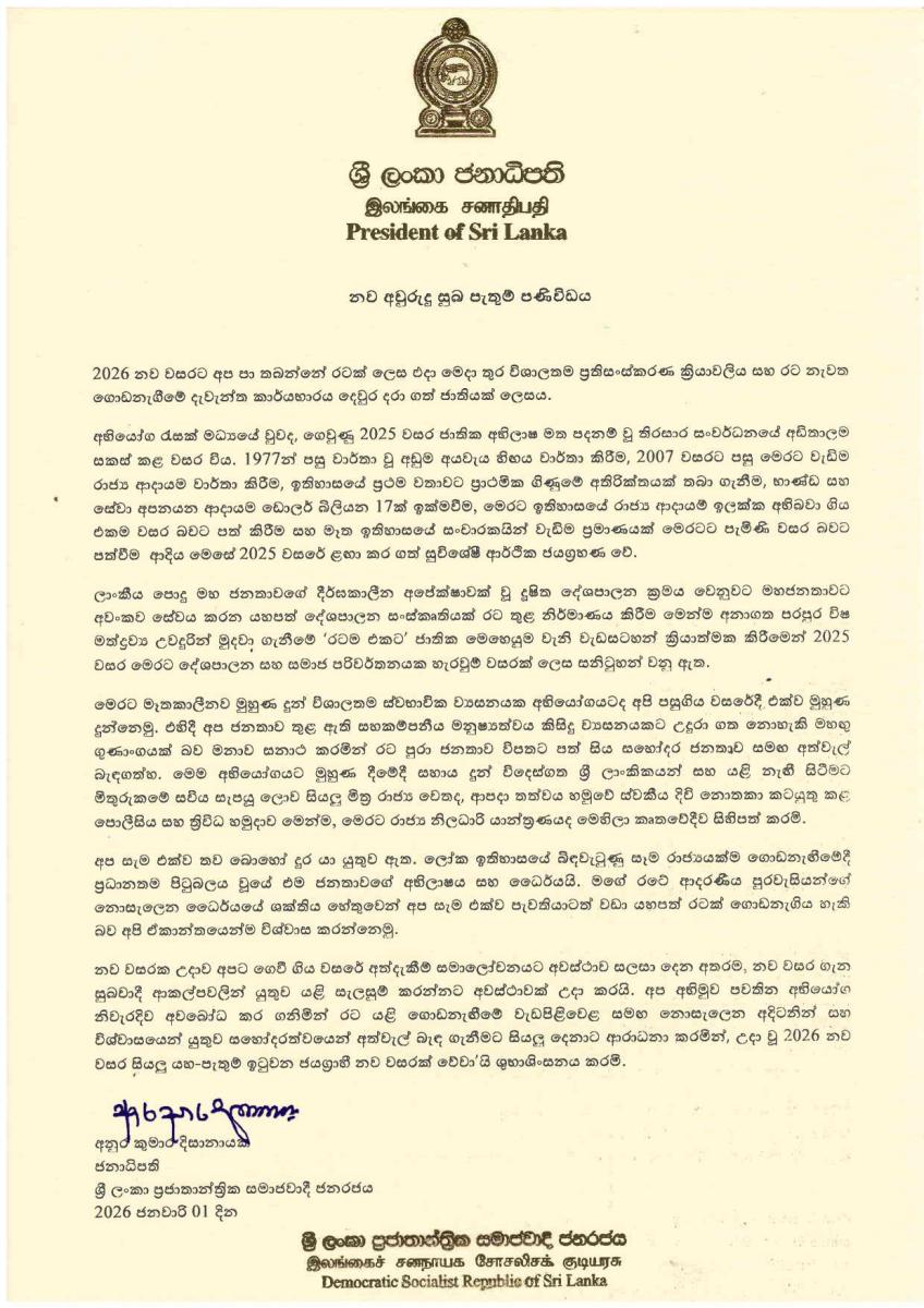 2026 New Year Message of H.E. the President of Sri Lanka